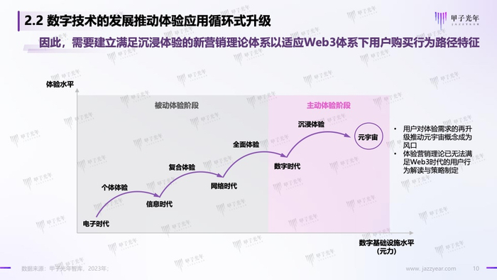 全球互联网发展迈入Web3.0时代,数字技术的发展推动体验应用循环式升级,需要建立满足沉浸体验的新营销理论体系以适应Web3体系下用户购买行为路径特征。