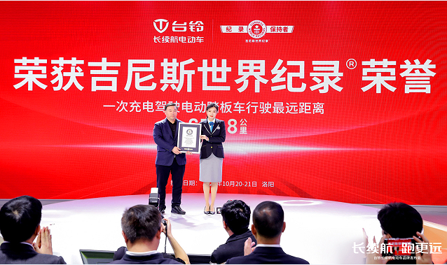 发布会上,吉尼斯世界纪录认证官侯颖向台铃集团高级副总裁常耀颁发了“吉尼斯世界纪录保持者”证书。