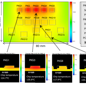上述所有方法对于解决发热问题的能力并非完全相同,其有效性可能会因设计条件的不同而有很大差异。因此,东芝进行了仿真2,以评估各种热设计方法的效果以及产生最佳结果的参数。