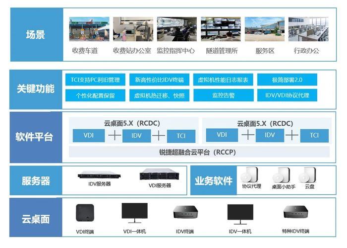 高速公路业务部门多、专业系统不一样,各路段收费站、监控中心、服务区等场景终端数量庞大、运维人员较少,终端的运维工作带来极大的挑战,越来越多交通单位将传统PC用云桌面替代,来提升终端运维工作效率。