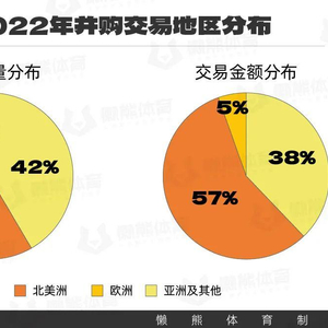 2021年,全球体育科技行业产生了223次并购交易,交易价值为119亿,这个数字于2022年攀升到783亿美元,这与微软以687亿美元收购动视暴雪密切相关。如果剔除微软收购动视暴雪这笔巨额交易,北美及欧洲市场依然是全球并购交易最活跃的地区,相比之下,亚非拉及大洋洲参与的并购交易价值仅占5%左右,这说明北美及欧洲体育行业的发达程度远远超过其他地区。