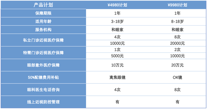 “幸目保”分为4980计划和9980计划两个版本,用户可以根据自身需求进行选择,适用年龄覆盖3-18周岁的儿童及青少年群体。力求为家长找到省心的服务,为孩子找到放心的保障,为眼睛找到用心的医生。