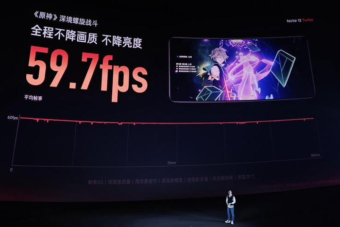 在Redmi Note 12 Turbo上,第二代骁龙7+加持下的Redmi狂暴引擎,已经能做到极致画质的《王者荣耀》60分钟不降亮度,且平均帧率119.2FPS;在全高画质的《原神》深境螺旋场景,第二代骁龙7+可以30分钟平均帧率59.7FPS,这是以前中端手机想都不敢想的旗舰游戏体验。