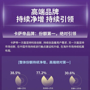 加速全球化进程。卡萨帝还放眼全球市场,在海外市场挖掘用户需求、探索增长空间。2022年8月,卡萨帝在泰国上市,泰国首家卡萨帝高端智慧家庭场景体验中心在曼谷Central World同步开业;9月,卡萨帝又携鉴赏家套系亮相德国IFA展,其倡导的高端生活方式在海外的影响力也持续扩大。