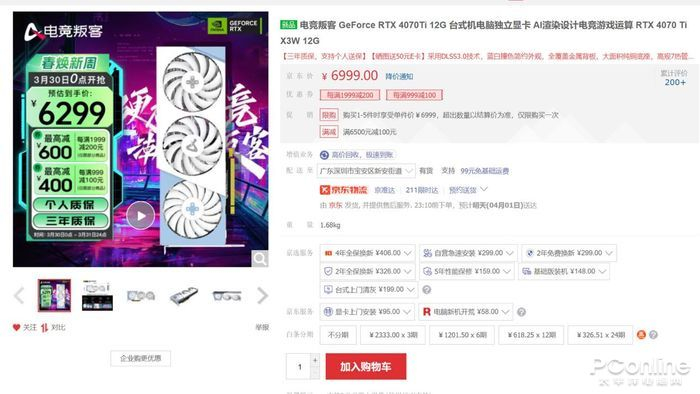 目前京东商城商品售价6999元,限时每满1999元减200元活动,预估到手6299元,属于近期低价,感兴趣的惠友可以入手。显卡搭载了NVIDIA第二代Ampere架构,可畅玩当下主流的新款游戏。