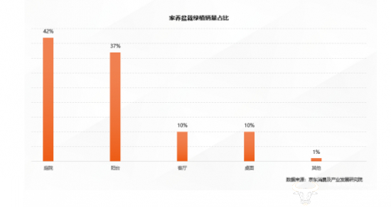 * 人们爱上在阳台种菜。在网上售出的绿植商品中,适合在庭院种植的商品销量占42%,适合在阳台种植的商品销量占37%,用于装点桌面和客厅的绿植销量分别占比10%。在适合阳台种植的绿植品类中,人们买的最多的是蔬菜和菌类。