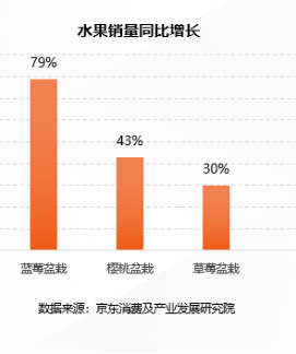 除了在阳台上种菜,很多消费者还在自家院子/阳台种盆栽、树苗等实现了“水果自由”,体验栽种、培育,直到收获的乐趣。京东销售情况显示,2023年前3个月,蓝莓盆栽、樱桃盆栽、草莓盆栽的销量同比增长都超过了30%。