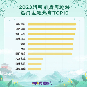 清明期间,本地及周边短途出游是主流,出游主题上具有显著的春游季特征。《报告》数据显示,清明假期(4月5日)前后周边游的热门主题按照热度排序依次为休闲娱乐、自然风光、游山玩水、森林公园、赏花、公园等。前十个热门主题中,具有赏花踏青属性的主题占据了六席。