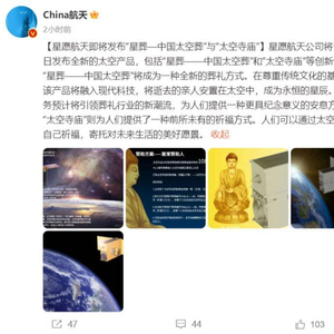 ↑网友“China航天”发布国内某公司即将发行“中国太空葬”和“太空寺庙”等新型葬礼方式的产品消息,引发热议