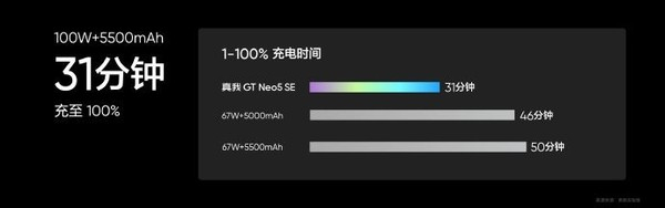 续航方面,真我GT Neo5 SE内置5500mAh超大电池,支持100W光速秒充,配备SUPERVOOCS全链路电源管理芯片,并且首发搭载AI智慧节电引擎,放电效率高达99.5%,31分钟可充至100%,在轻度使用模型下还可实现1.99天超长续航。并且机身轻至193.1g,兼具超长续航和轻巧手感。