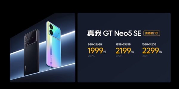 最后在价格方面,真我GT Neo5 SE 8GB+256GB版本售价2099元(首销1999元),12GB+256GB版本售价2299元(首销2199元),12GB+512GB版本售价2399元(首销2299元),16GB+1TB版本售价2799元(首销2599元)。