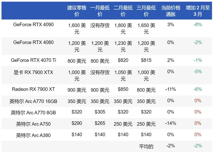总的来说,好消息是价格上涨已基本成为过去。这包括 GeForce RTX 4090 从 2 月份的 1800 美元降至 1650 美元,并且在 1 月份完全无法使用。 对于您可以获得的最快 GPU 来说,这是一个健康的情况,目前没有短缺的迹象。这使得 RTX 4090 的价格标签仅比建议零售价高 3%,大多数高端买家都会接受。
