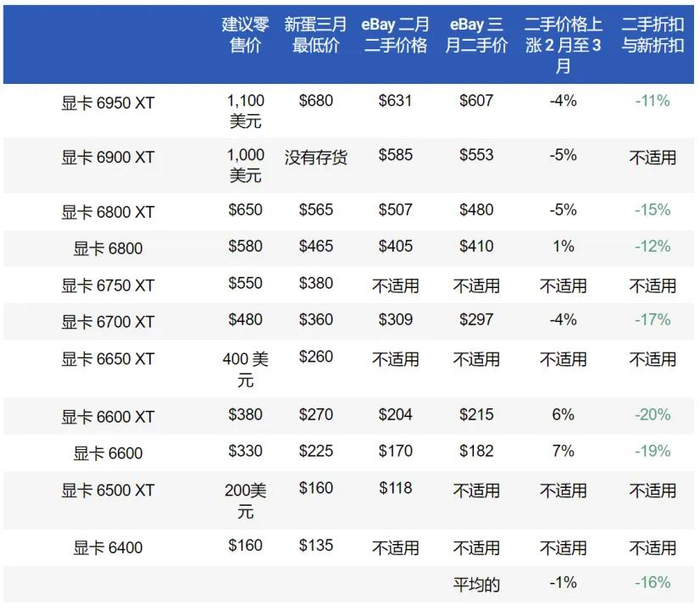 至于二手市场,在新市场的定价一致的情况下,没有降低二手价格的压力,几个月来一直是这种情况。例如,英伟达 RTX 30 系列显卡平均每月仅下降 2%,大多数显卡与新旧显卡相比仍保持约 25% 的折扣。对于 Radeons,买旧的比买新的没有意义。例如,与购买新的 Radeon RX 6800 相比,购买二手 Radeon RX 6800 仅可享受 12% 的折扣(平均),如果您没有保修,这是不值得的。