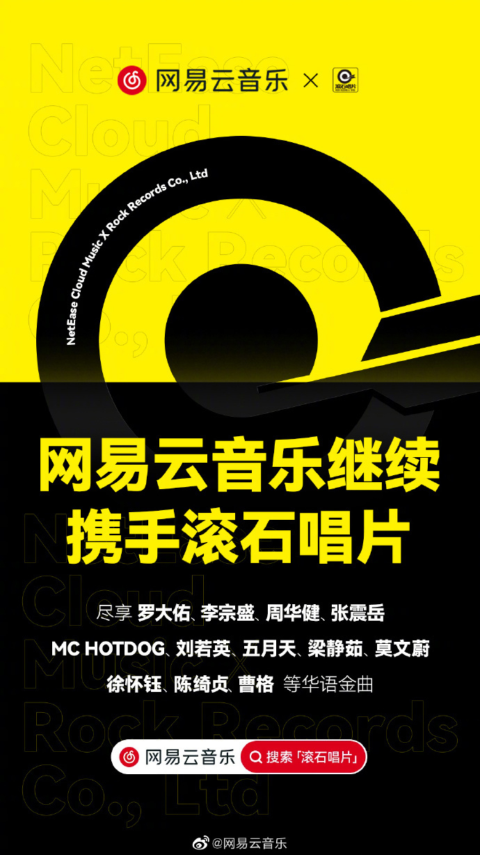 网易云音乐与滚石唱片达成续约协议,继续提供罗大佑、李宗盛、周华健、张震岳等音乐作品