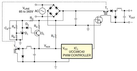 图2辅助绕组为电源的PWM供电控制器。