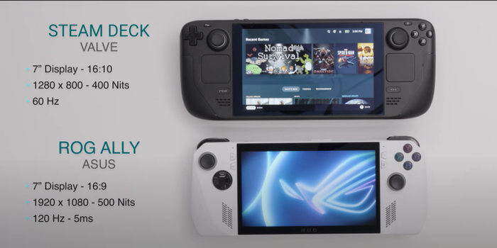 油管博主Dave2D现已上手这款掌机。从体积上看,该款掌机明显小于Steam Deck,屏幕则采用7英寸16:9 1080p分辨率屏幕,更加细腻,刷新率也达到了120Hz,亮度为500尼特,整体屏幕素质和机身设计还是相当不错的。而在配置方面,该掌机采用定制的AMD APU,尽管目前规格尚不能确定,但已经确认该APU为Zen 4 CPU+RDNA 3 GPU的组合,性能表现相当值得期待。