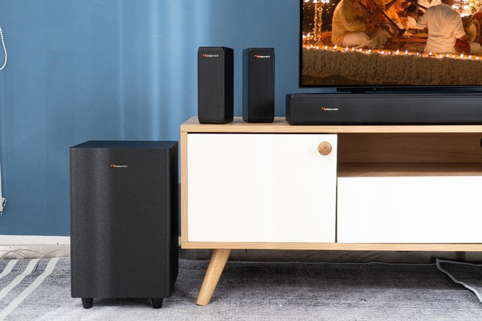 如果你对回音壁的效果存有怀疑态度,不妨先来尝试一下入门级的海神210。不仅价格方面适合更多用户,而且占地面积更小,可以放在电视下方或者观影位面前的位置,以获得最好的音质体验。这款回音壁拥有2.2声道,支持杜比音效解码。在扬声器配置上,内置双独立低音,组成真正的立体声道,主机还增加了气孔设计,低音表现力更加震撼。六个喇叭单元形成环绕立体声输出,包含4个优化喇叭单元,2个低音单元,还额外增加了声学导风口,让整体音频输出层次分明,细节表现度好。