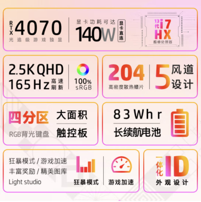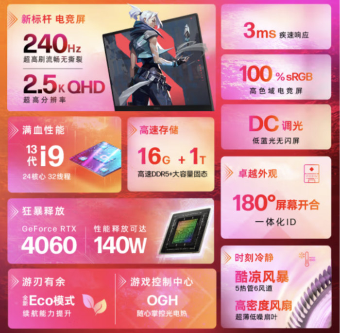 性能方面,产品最高搭载第13代英特尔酷睿i9-13900HX处理器,拥有先进的高性能混合架构,最高可达24核心32线程,睿频频率最高高达5.4GHz,性能相比上一代提升25%。显卡方面,最高可选英伟达GeForceRTX4080,开启狂暴模式后,显卡最高性能释放水平可达145W,能够带来满功耗性能释放水平,助力玩家输出满血战斗力。京东首发价为6999元-13999元,参与晒单好评活动赠包鼠套装,4月10日正式开售。
