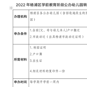 ↑2022年杨浦区学前教育阶段公办幼儿园转园办法