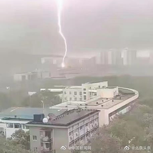 今日,有网友发帖称,华中科技大学有宿舍遭遇雷击,从发布的照片中可以看到,有闪电从天而降,另一张照片中可以看到有宿舍内的吊顶脱落。