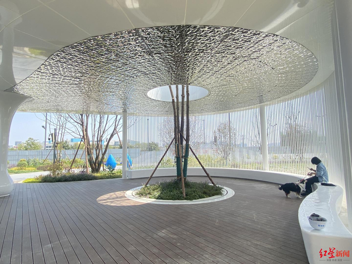 4月4日下午记者来到公园门前时看到,目前围挡内的公园已经建成,但还有部分植物并未完全长成,几名施工人员正在园区内对绿化带、景观建筑进行修补,另一边的抽水管正将水送入湿地公园内。张嵩告诉记者,由于公园内新栽种的植物生长周期不同、花期不同,所以有些已经开花,有些却还没有发芽。