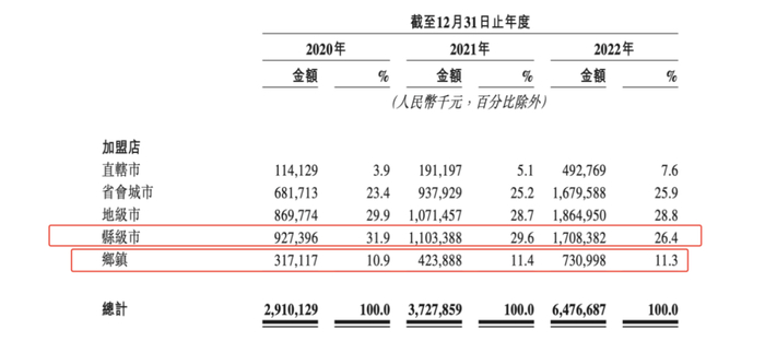 “农村包围城市”是锅圈的发展路径,其加盟门店占比达到99.9%,县级市、乡镇一级的加盟门店,在2020年合计贡献超过四成的收入,其中县级市加盟门店收入在2020年处于整体贡献最高的地区,达到31.9%。