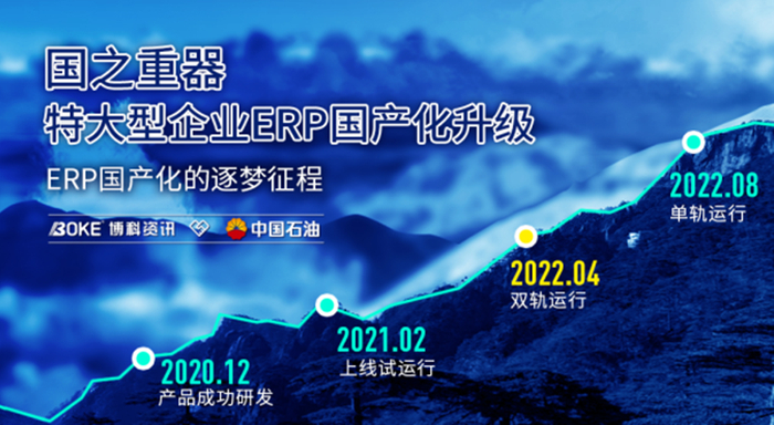在ERP国产化的逐梦征程中,博科资讯联合中国石油打造的昆仑ERP项目于2021年取得了重大突破,昆仑ERP在中国石油大庆石化公司上线运行;2022年4月15日,在大庆石化公司昆仑ERP和SAP系统双轨上线运行,经过3个月的月结对比验证,数据基本一致,具备完全单轨运行条件,经过集团公司各部门审批后,在2022年8月9日,昆仑ERP系统在大庆石化公司实现单轨运行,标志着国产化ERP系统完全可替代国外主流产品,完成了国产ERP系统首次在大型央企的应用实践。“星光不负赶路人,江河眷顾奋楫者”,中国石油昆仑ERP的科技攻关“大庆会战”,博科人学习并发扬的中国石油人的铁人精神, 获得了中国石油的高度认可,并来信感谢。