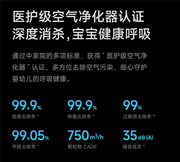且拥有Antiviral Pro 过敏免疫——滤芯用下层H11及上层H14滤纸空气滤材组合,配合静电驻极技术,吸引并牢牢锁死细菌、过敏原等,避免二次释放。搭载除敏因子,主动消杀附着到滤芯上过敏原等有害颗粒物。从源头开始,释放深层洁净力。