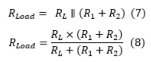 现在继续考虑公式 5 和 6 中的其余项。 Vamp项相互抵消,对Ptotal,avg和Voff没有影响,通常由应用中预先确定。换句话说,系统无法使用Voff来降低功耗。类似地,V+轨电压通常由电路中可用的电源电压设置。另外,RLoad也是由应用预先确定的。但是,RLoad是包括任何负载输出的组件,而不仅是负载电阻器RL。在图 1 所示电路的情况下,RLoad将包括RL和反馈组件R1和R2。因此,RLoad将由等式7和8定义如下。