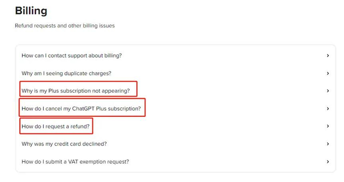 OpenAI4月5日开辟的退费解疑页面