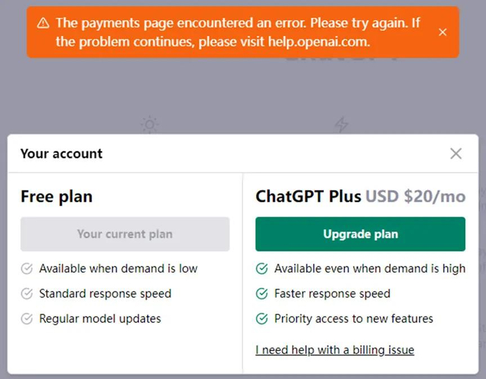 时隔一天ChatGPT恢复Plus订阅服务 但仍有概率无法跳转支付页面