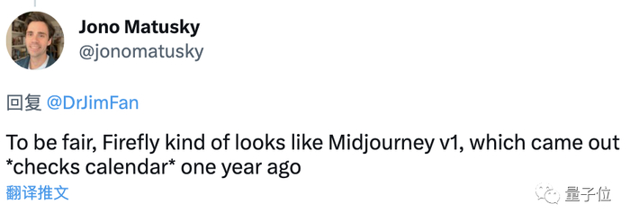 测试就是这些,总体看下来,Firefly 确实完败,有种小学生 VS 大学生的赶脚,也有网友认为 Firefly 的水平也就算 MidJourney 的 V1 版本。