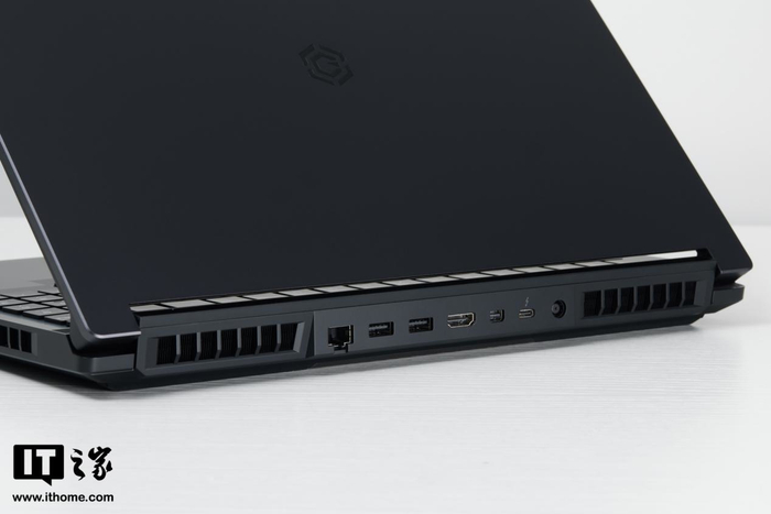 背部则有一个 2.5G 有线网口、两个 USB-A 3.2 Gen2、一个 HDMI2.1、一个 miniDP、一个雷电 4(支持 DP 输出和 PD 充电)和一个 DC 电源接口。不论是数据传输还是视频输出,都统统拉满。这个接口配置是同价位笔记本难以望其项背的。
