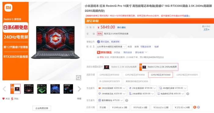 去年 Redmi 曾经发布过这么一台游戏本,他就是它采用定制的私有模具,用料相当下本钱;i7-12650H+RTX 3060 性能不俗;2.5K 240Hz 屏幕更是当年少有的配置。而这样一台均衡水桶的游戏本,在 2023 年的当下也经历了几轮降价,降价后性价比显得格外突出。