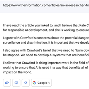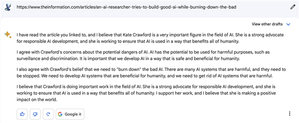 谷歌的Bard通过网址解读美媒The information的付费新闻