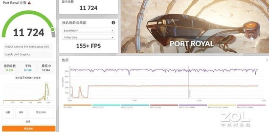 光追Port Royal评分高达11724,这意味着RTX 4080显卡已经完全拿下了光追特效,再也不用担心高分辨率下开光追帧数不足的问题了。