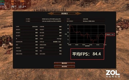 到了RTX 40时代,在2.5K分辨率、最高画质下运行《全面战争:战锤3》的平均帧率来到了84.4fps,彻底攻克这款硬件杀手。