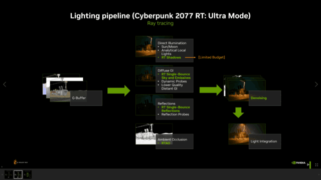 RTXDI的全景光线追踪和全局光照相结合,可以让玩家们尽享更为先进的实时光照技术,加强游戏的沉浸感与画面效果,并抢先预见未来各种游戏的画面效果。推荐玩家们更新游戏驱动至最新版本“赛博朋克2077(Cyberpunk 2077)”的“光线追踪:Overdrive模式”打造的GeForceGame Ready 驱动。