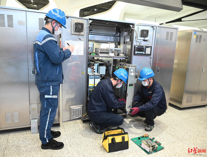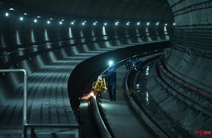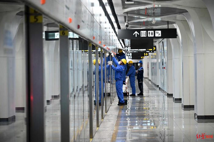 4月7日零点30分,红星新闻记者跟随成都轨道集团工作人员进入凌晨关站后的地铁18号线站内。记者看到,车站虽然已经关闭,但是仍透露着紧张忙碌。售票机、闸机、空调、站台屏蔽门、扶梯都有人在作业;进入轨行区间(隧道内),探伤、综合整治、磨轨、检修接触网等,短短的900米,记者走了2个小时,而对于现场的作业人员来说,有的一晚上甚至只能完成短短几米的作业任务。