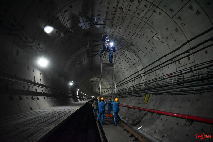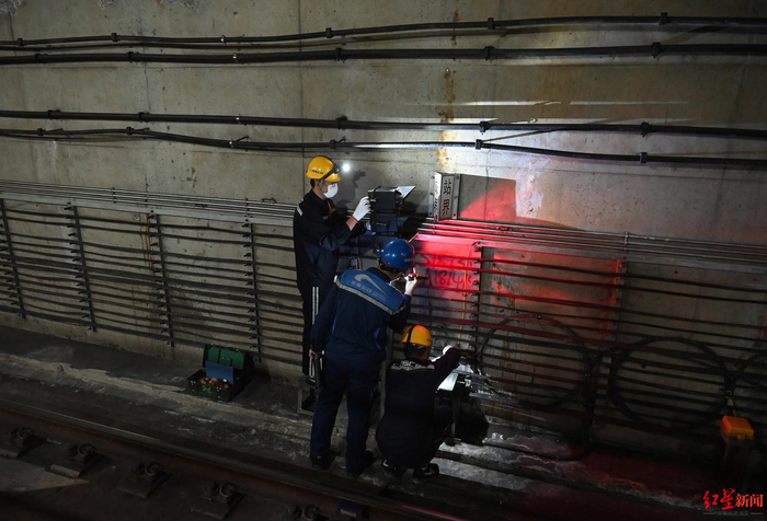 凌晨1点,在完成人员清点、设备清点等工作后,记者跟着施工人员进入轨行区间。