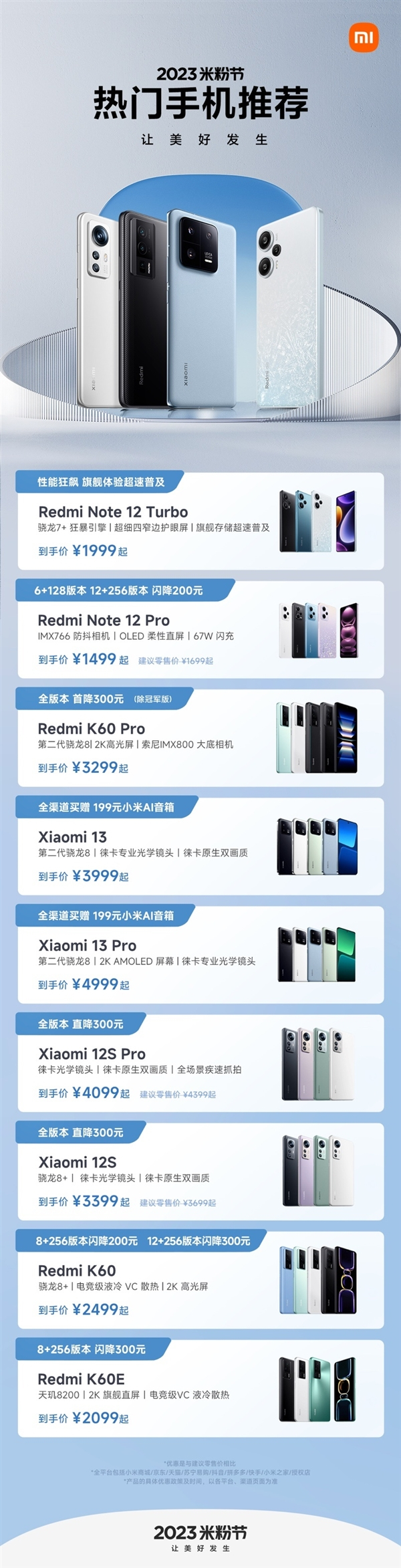 一图看懂!小米/红米多款热门机型官方降价:小米12S/13全系有活动