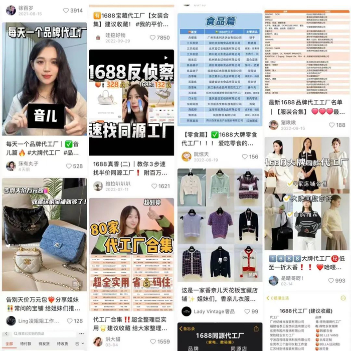 实际上,作为全球拥有最完整制造链条和制造能力的国家,中国消费者一直都在积极地寻找着“平替”及大牌代工厂的意愿。2021年,“平替”便曾入选了消费领域的“五大热词”。而在小红书上,搜索关于“1688大牌同源工厂”的笔记,能找到数万条之多。