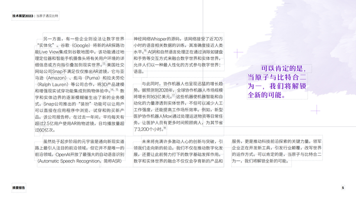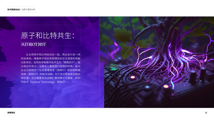 埃森哲《技术展望2023》今年的主题为“当原子遇见比特:构建数实融合的新基础”,探讨了企业在加速全面重塑之时,一系列能够促进现实世界与数字世界交融的技术发展趋势。
