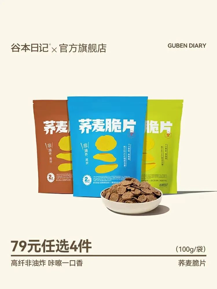 谷本日记新出的荞麦脆片完全戳中减肥姐妹:非油炸、高膳食纤维、脂肪含量只有薯片的1/10!即便一次吃上一整包,脂肪含量也才4.3g,毫无罪恶感。而且,荞麦脆片的高膳食纤维也让饱腹感更持久。吃上一包,立马治好我的嘴馋。