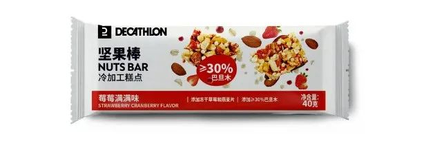 谐音梗,扣分!但是不得不说,这个“莓莓满满”的名字太对味了。不同于普通的坚果棒,迪卡侬这款“莓莓满满味”加入了冻干草莓和燕麦,让口感更丰富的同时,口味也不那么单调,果干+坚果的搭配YYDS!