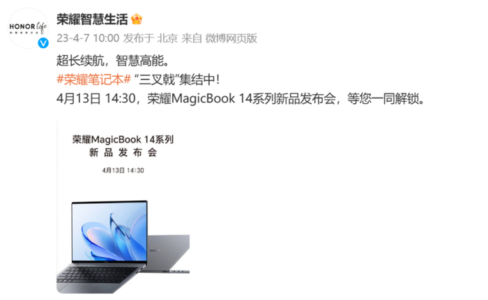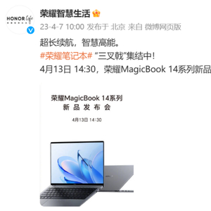 4月13日,一起期待荣耀MagicBook 14/14 Pro 2023系列会给我们带来哪些不一样的笔记本新功能、新卖点吧。