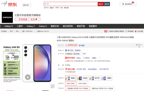 三星GalaxyA54上架发售 搭载三星芯片 2999元起