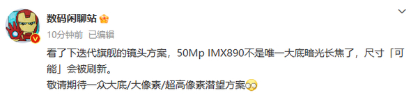 4月10日,手机中国注意到,有相关数码博主爆料称,根据他所看到了迭代旗舰镜头方案,5000万像素的索尼IMX890传感器并不是唯一的大底暗光长焦方案了,其尺寸可能会被刷新率。由此推测,接下来厂商们的旗舰机型可能会普遍配备大底、大像素和超高像素的潜望式长焦镜头方案,长焦镜头可能会成为厂商们提升旗舰机型影像能力的又一重要方向。