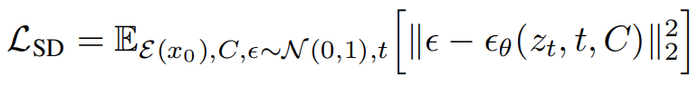 Stable Diffusion 的整体训练目标可以表示为如下公式: