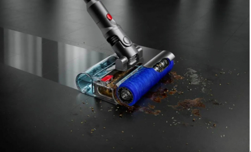 要说戴森这款洗地吸尘器的与众不同之处,那就是在原有的光学探测、防缠绕等先进核心科技之上,搭配了戴森首款地面清洗配件——Nautik™洗地滚筒配件。